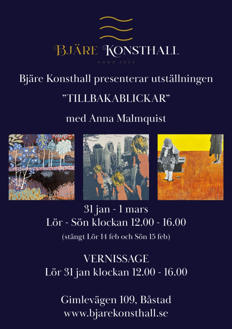 I vår nya utställning ”TILLBAKABLICKAR” på Bjäre Konsthall presenteras Anna Malmquists konstnärskap i ett koncentrerat och nyanserat urval. Genom verk…