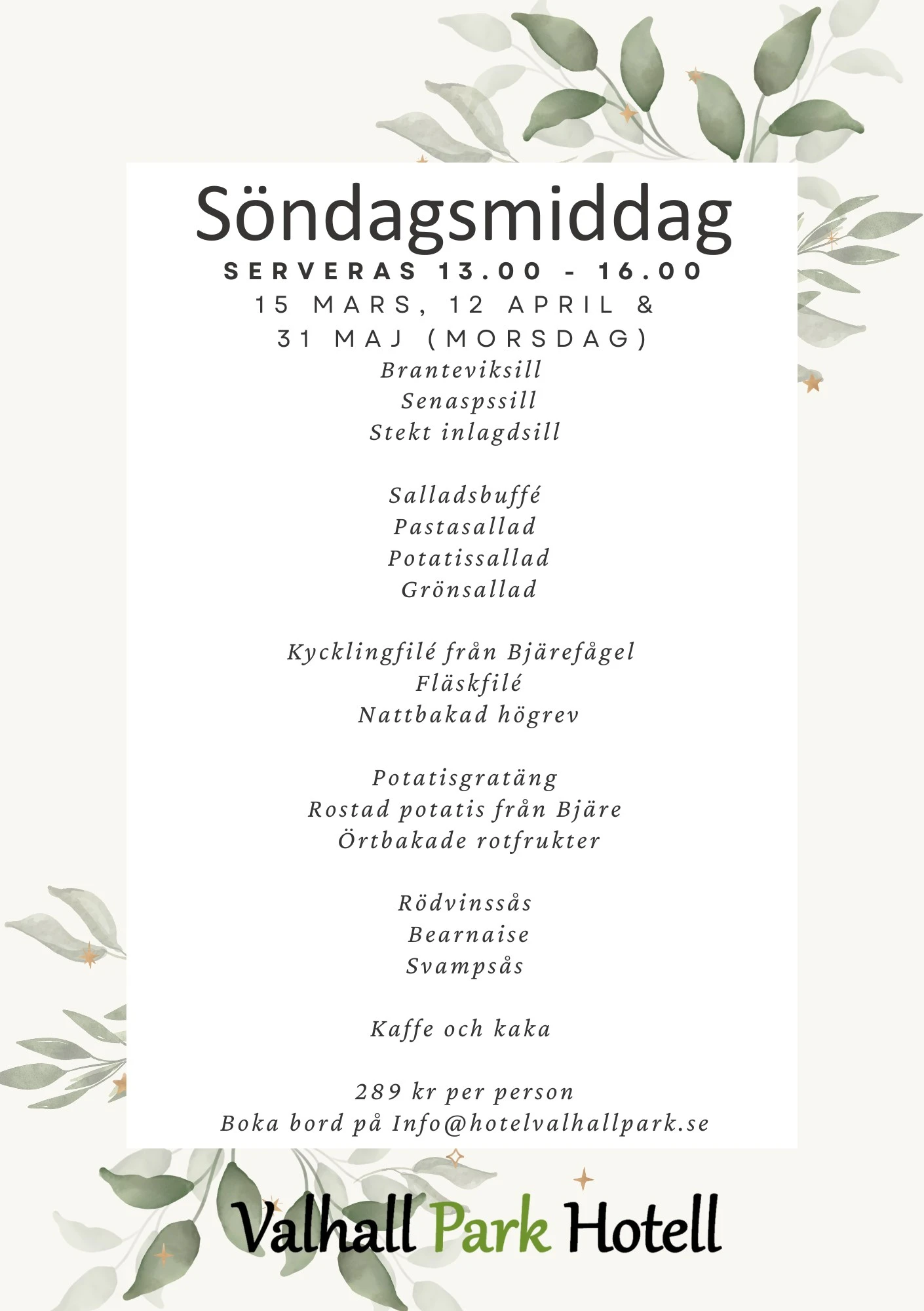 Nyhet för 2026 – Vi kommer att servera söndagsmiddag! 🥂 Andra söndagen i månaden kommer vi mellan 13.00-16.00 att duka…