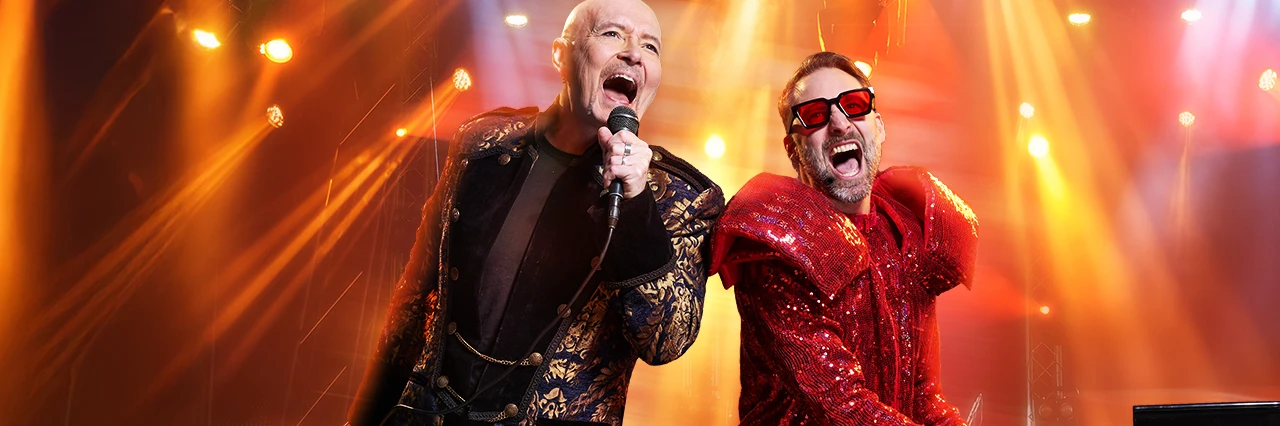 Förvänta dig en unik konsertupplevelse då de tillsammans med några av Sveriges främsta musiker tolkar Elton John och Freddie Mercurys imponerande låtskatt i en sprakande och visuell show.
