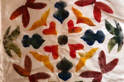 Välkomna till en workshop då vi gör schabloner och trycker på tyg.