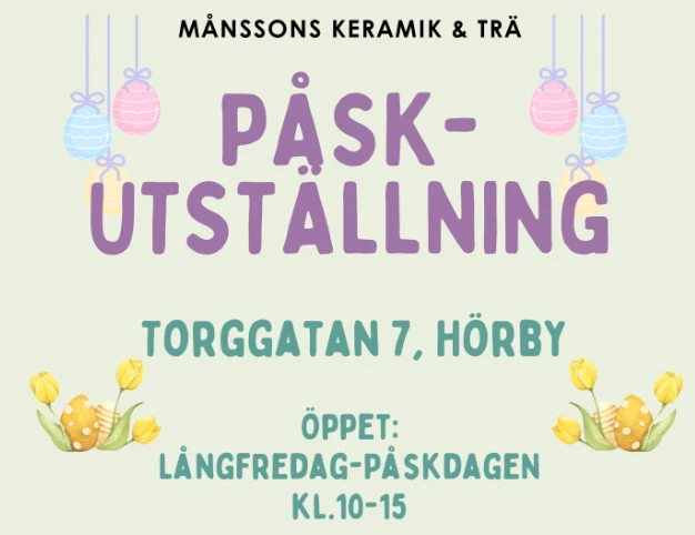 3 utställare ställer ut och säljer sina alster. Utställare: Kristina Månsson – keramik AnnSofi Turesson – virkning Frida Månsborg –…