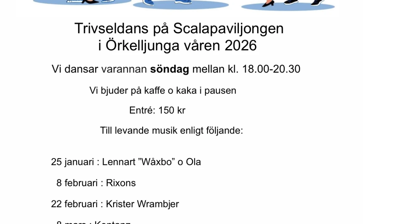 Välkomna på Trivseldans på Scalapaviljongen i Örkelljunga våren 2026!